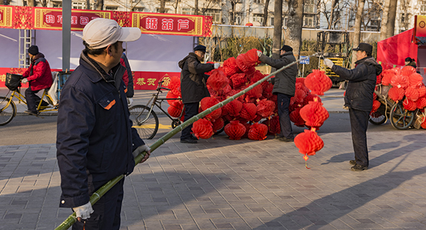 挂灯笼的人们 作者:刘金慧 拍摄地点:龙潭湖,他们是山东人为了布置北京的庙会而选择了不回家过年