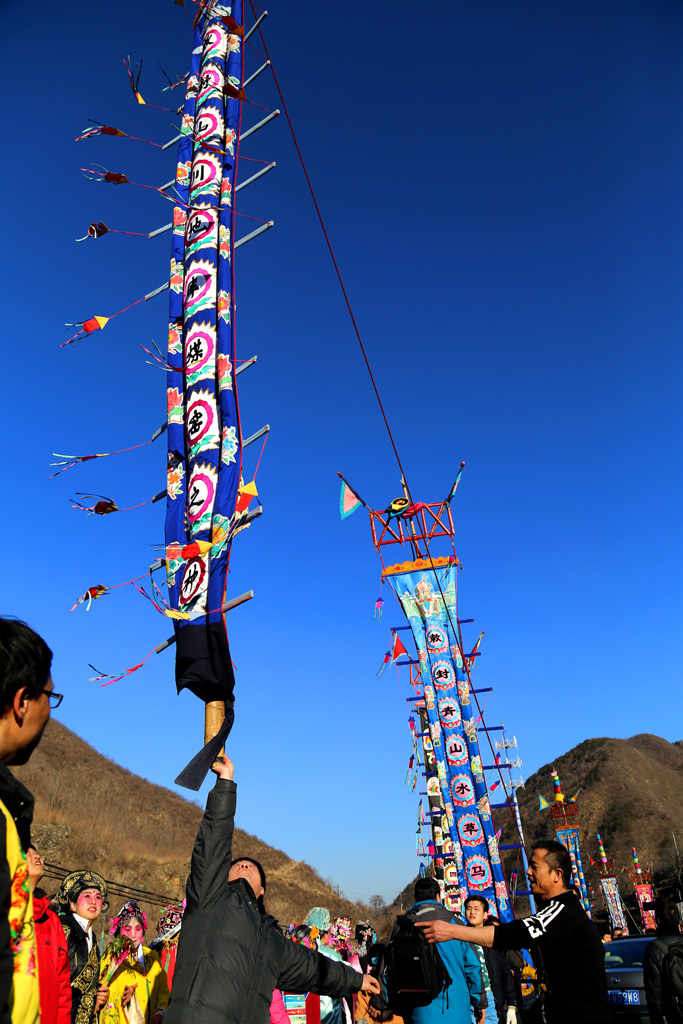 幡动山村500年(组图) 作者:邹惟麟 拍摄地点:门头沟区 (每逢正月十五这一天,有500年传承历史的国家级非物质文化遗产项目——北京门头沟区千军台、庄户举办盛大的古幡走会。大山里千军台、庄户等几个村的村民,簇拥10面大幡汇聚至千军台村口举行接会仪式。仪式过后,各档花会依次起会,走街串巷,为附近几个小山村的人们送去新年的祝福。)