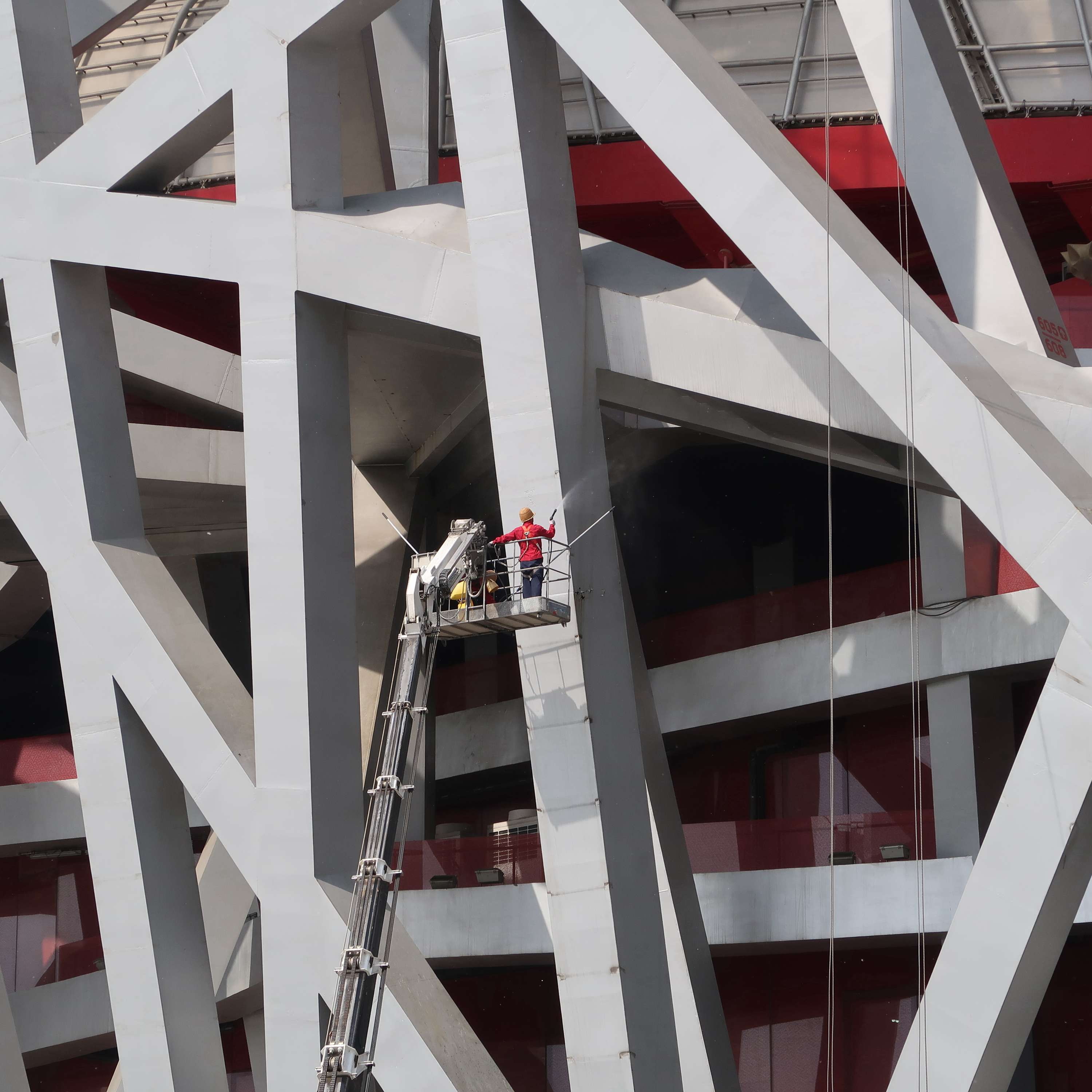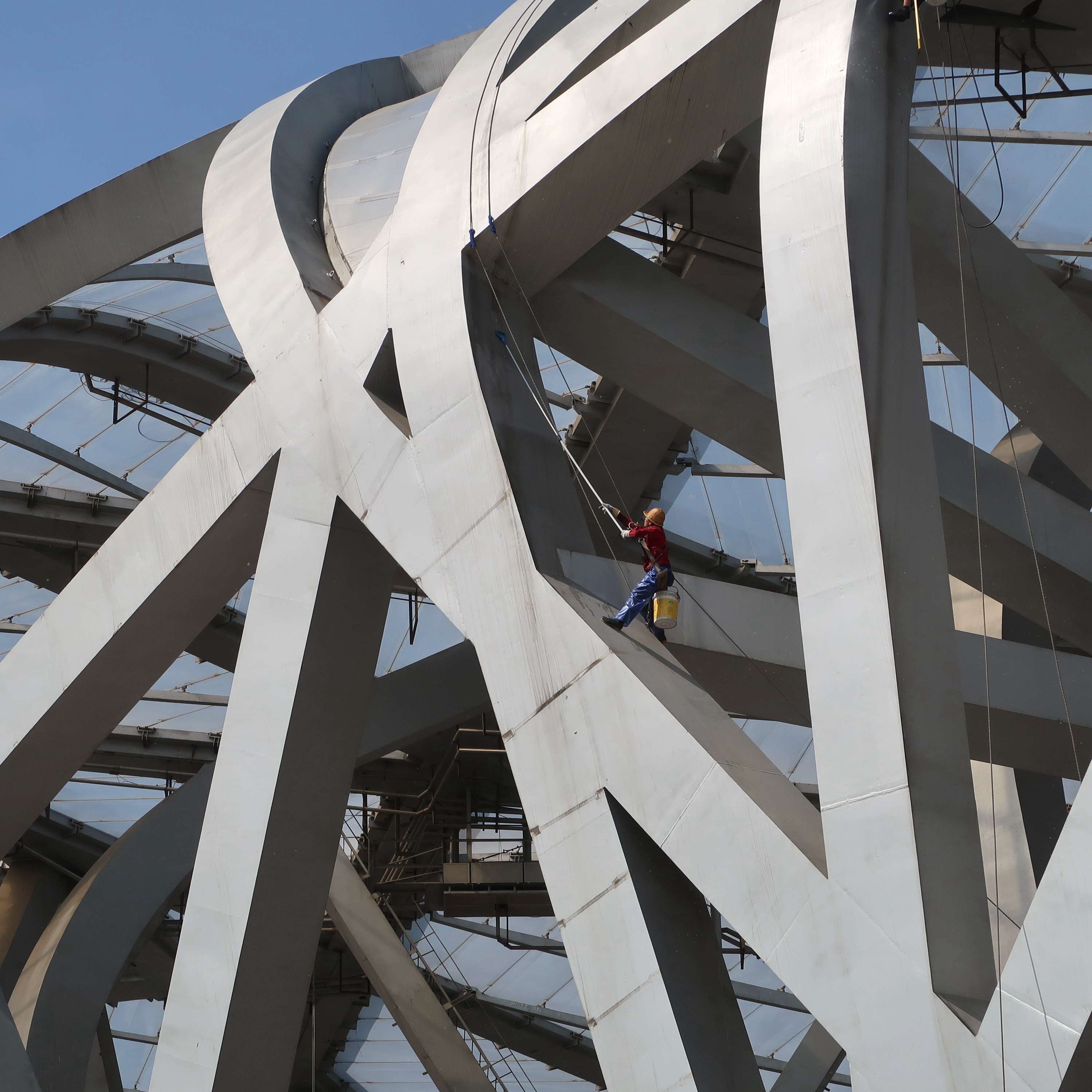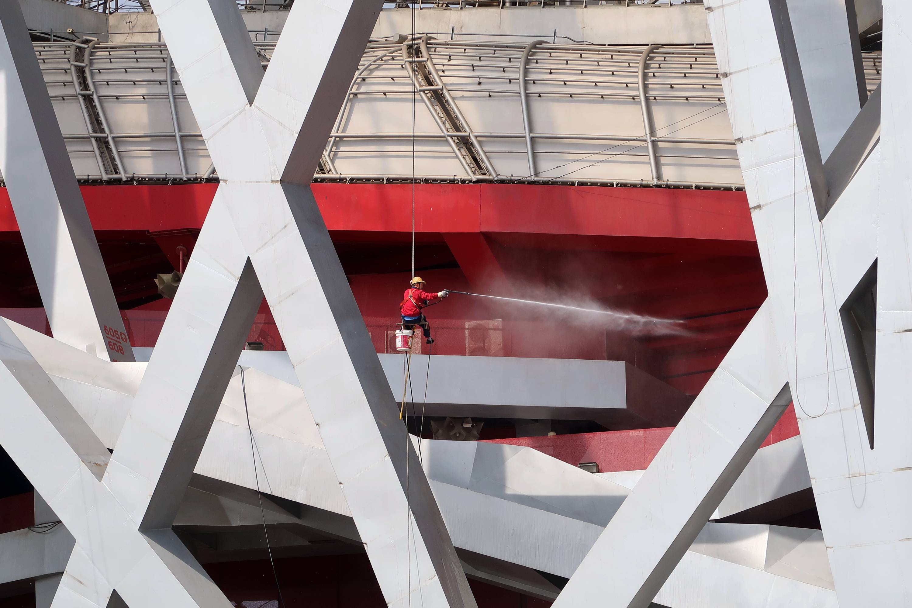 组图 清洗鸟巢 作者:张齐 拍摄地点:北京奥体