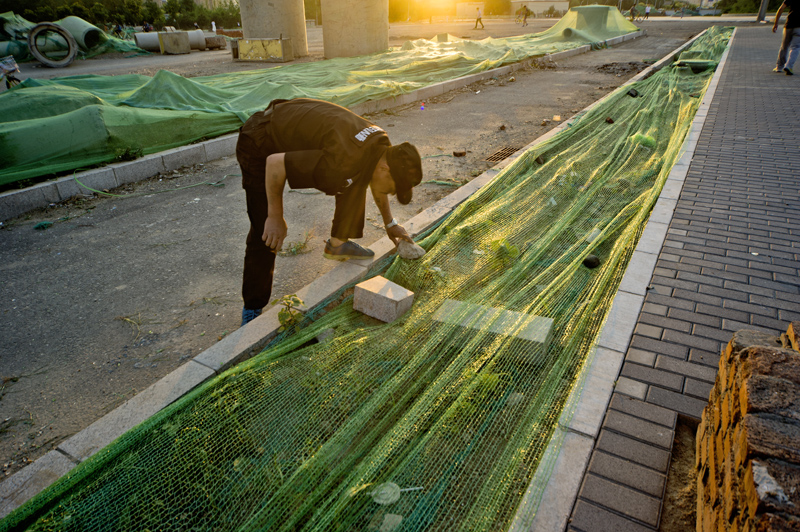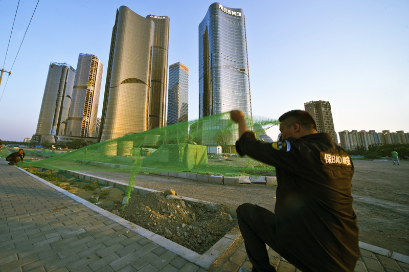 防扬尘保蓝天(组照) 作者:裴桐年 拍摄地点:朝阳望京
