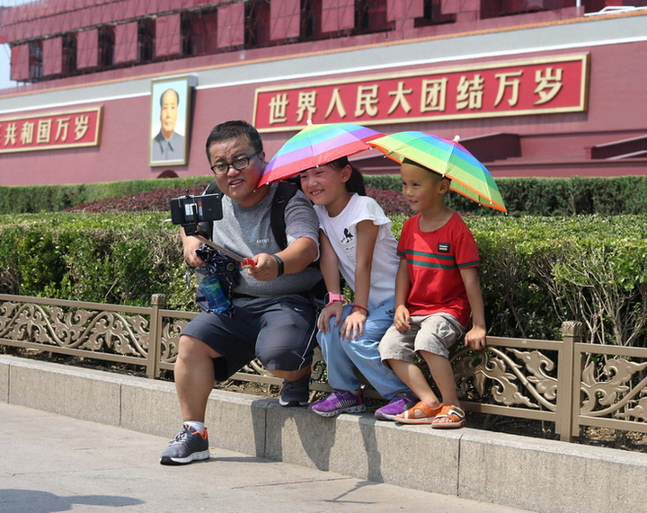 游客顶烈日游览天安门热情不减 作者:王新 拍摄地点:天安门广场