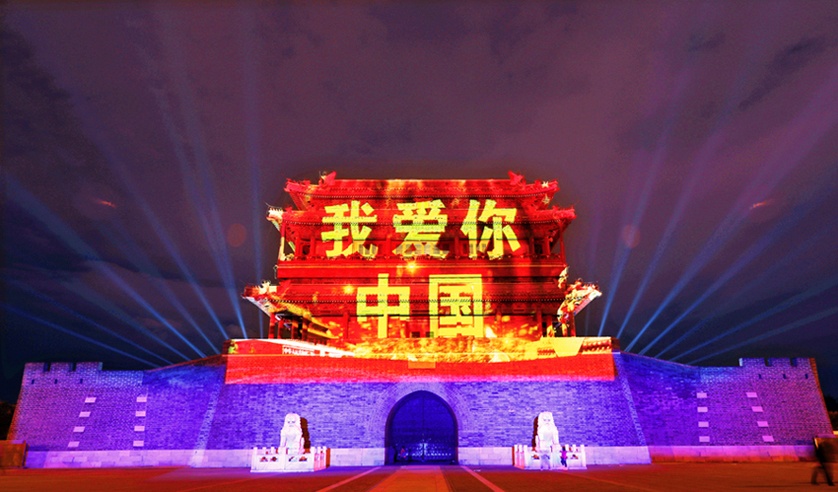 《绚丽灯光秀—我爱你中国》组图 作者:邹惟麟 拍摄地点:东城区永定门城楼;朝阳区塞隆国际文化创意园