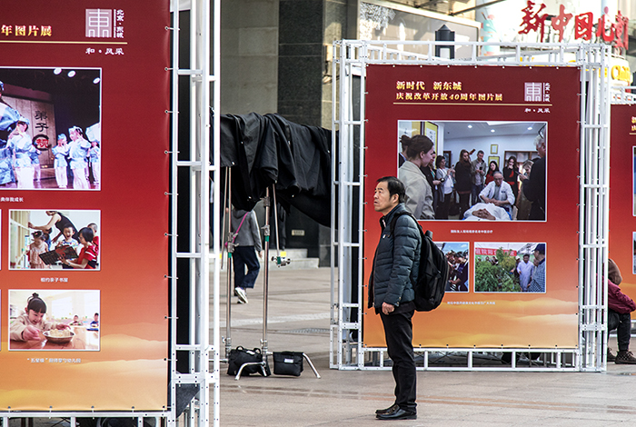 王府井大街的东城区庆祝改革开放四十周年图片展吸引了市民参观 | 参赛作品