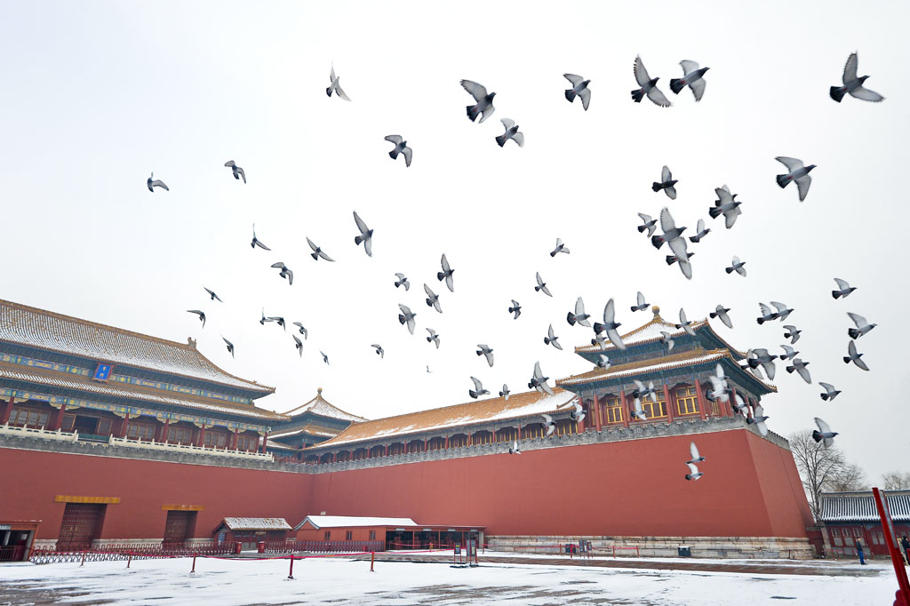 瑞雪翔鸽喜迎新 作者:刘玉奎 拍摄地点:午门南侧
