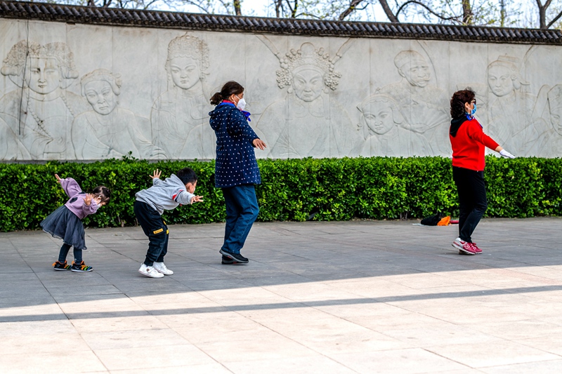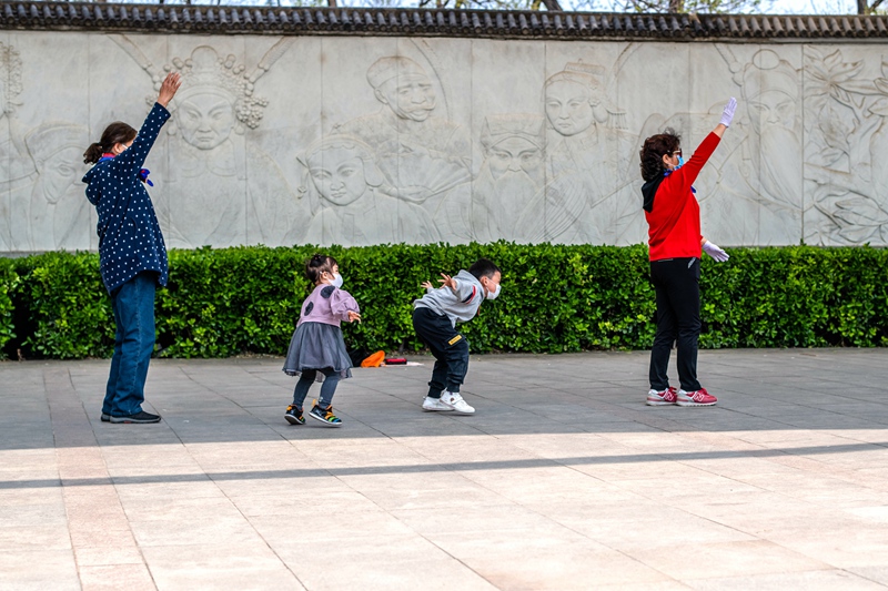 组照《学着奶奶健身战“疫”》 作者:陈冲 拍摄地点:北京丰台万芳亭公园
