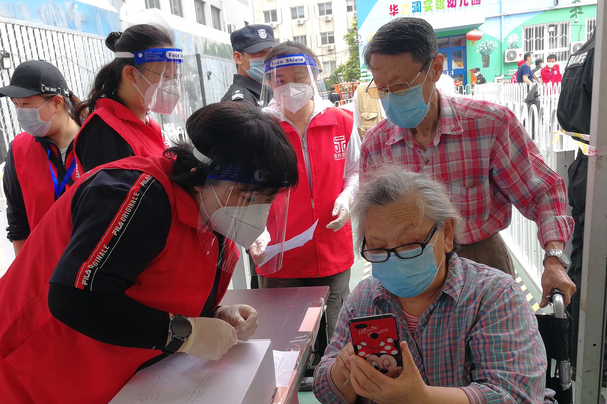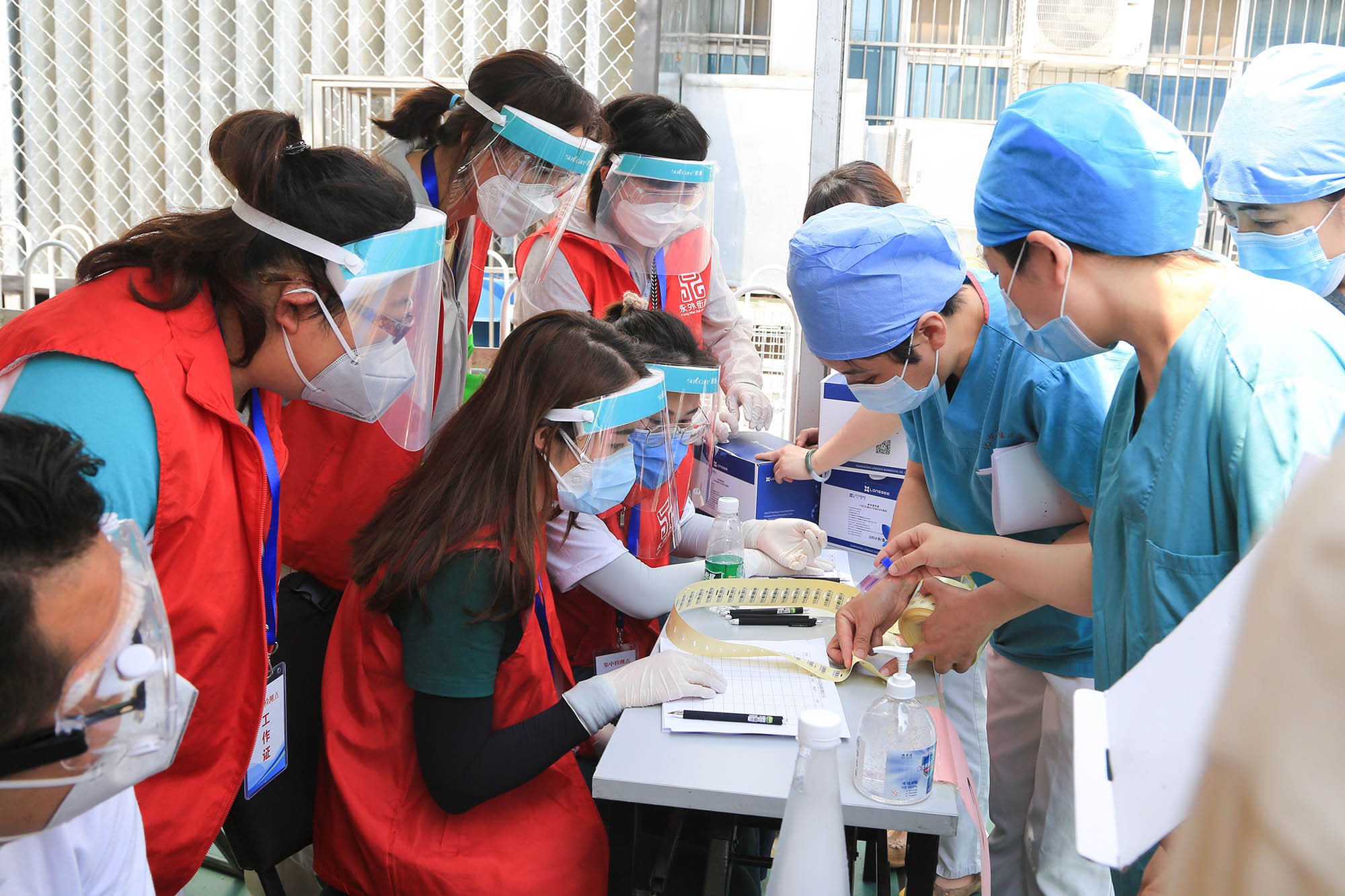志愿服务在核酸检测第一线(组照4张) 作者:樊功厚 拍摄地点:东城永外
