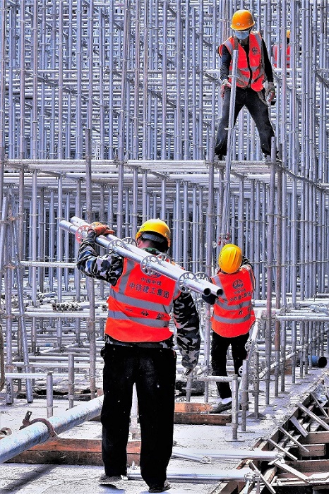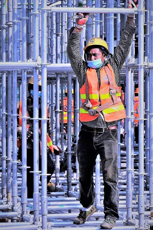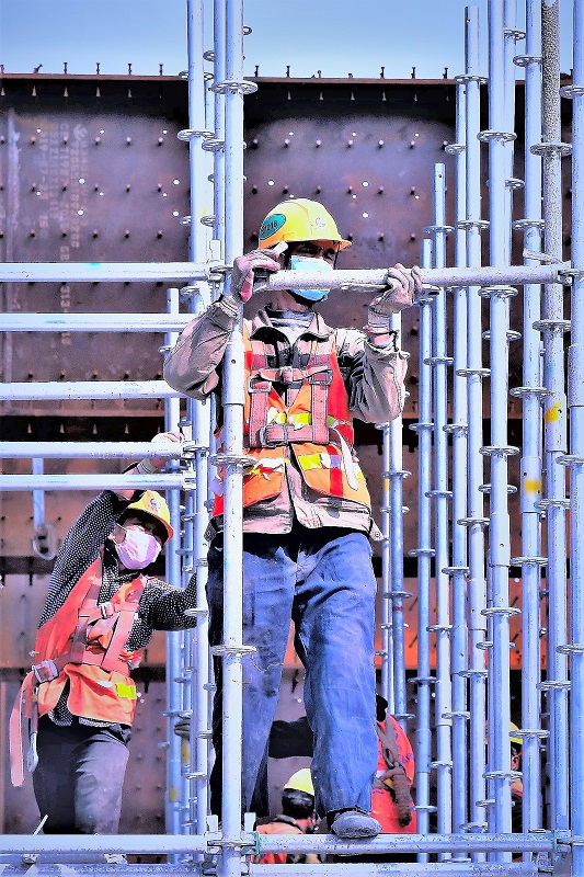 《疫情下的复工者》组照 作者:徐文辉 拍摄地点:北京丰台火车站改扩建工地。