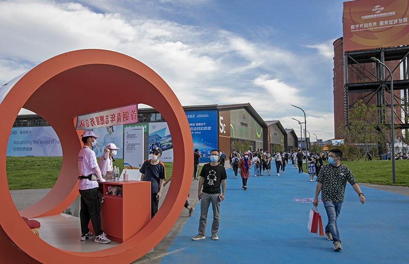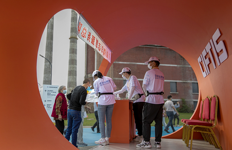 青年志愿者(组照4-4) 作者:王宇辰 拍摄地点:2021中国国际服贸会首钢园展区