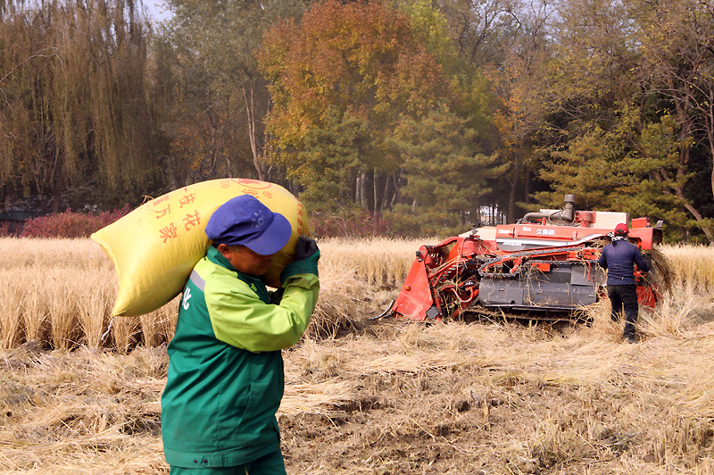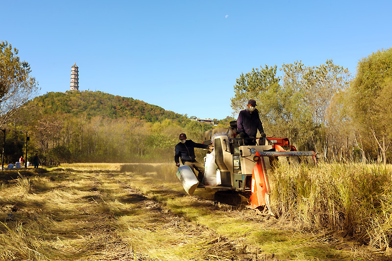 玉泉山下收割忙(组照) 作者:凌福平 拍摄地点:海淀区“”玉东“”京西稻种植区