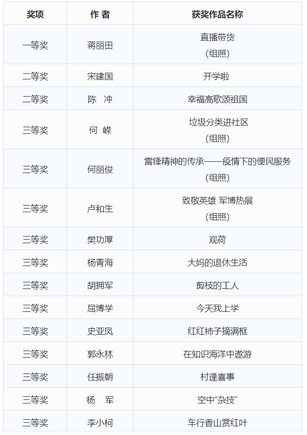 “筑梦小康 幸福北京”第二期网上摄影比赛自2020年9月1日启动,至10月31日截稿,共收到参赛作品740余幅(组)。经过评选,最终角逐出一等奖1名、二等奖2名、三等奖12名。获奖作品将直接进入“筑梦小康 幸福北京”群众摄影比赛总评环节,祝贺所有获奖者!