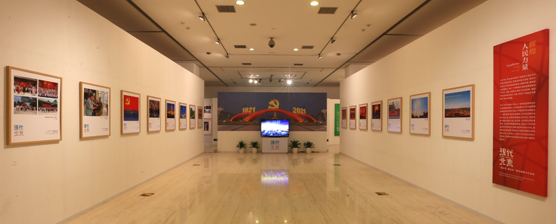 在空间布局上,展览共分为四个部分。第一部分主要再现了建党百年的辉煌时刻,首都市民深厚的爱国之情和爱党之情;第二部分展现了北京的“首善”精神,构建现代文明的丰硕成果;第三部分通过多元化的视角,描绘了北京兼顾文化传承和创新发展的无穷魅力;第四部分展现了首都市民的幸福生活和将北京建设得更加美好的强烈愿景。