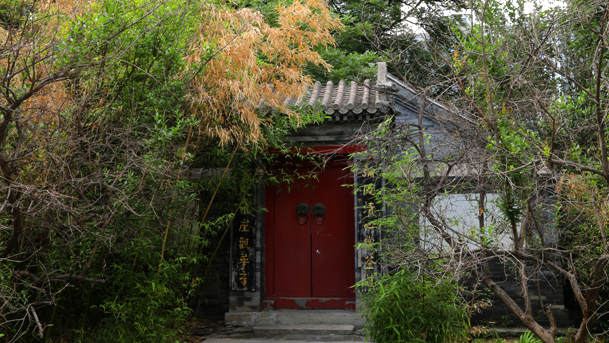 雨后初晴,弥陀古寺被郁郁葱葱的树木覆盖着,周围便是居民生活的小区。不同于大多数古寺修建于僻静之地,弥陀古寺位于北京市朝阳区绿色家园媒体村天居园小区内,就在我们的身边。