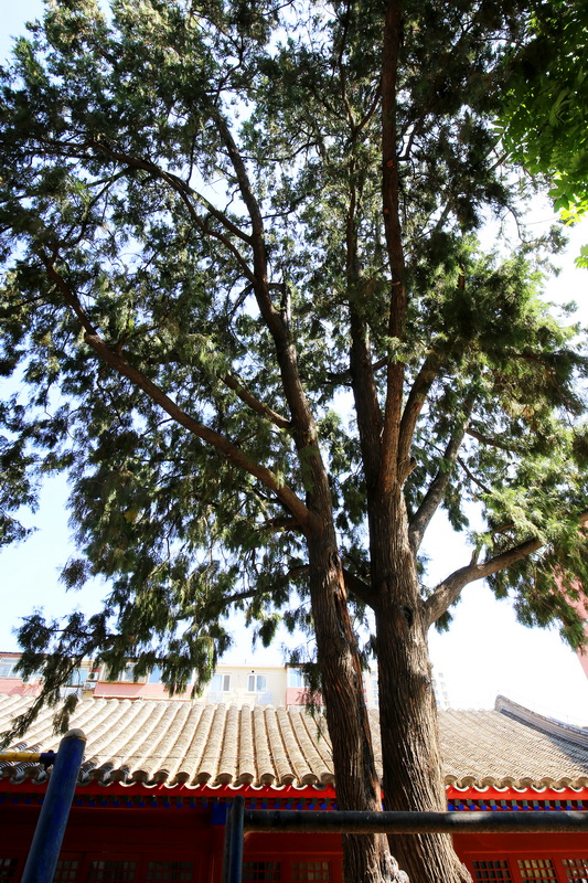 位于慈云寺桥西南方向的两株,在今天的北京教育学院朝阳分院附属学校内。这里曾有一座关帝庙,后改为了英家祠堂。“关帝”是三国时期名将关羽的另一称呼,因被儒教尊为关圣帝君,故得此名。清雍正时期,关羽被尊为“武圣”,与“文圣”孔子相对。自1949年建校时,这两株古树就一直驻守在校园里,见证着学校的发展。