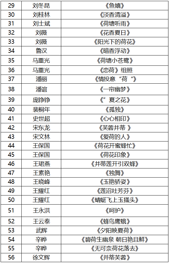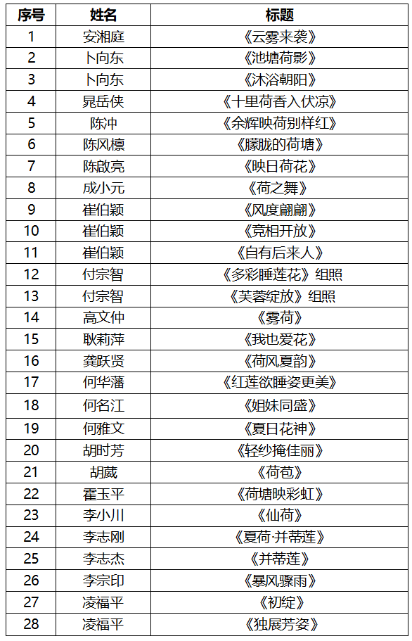 “荷风水韵”主题摄影展入选名单