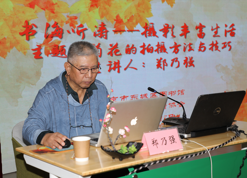 又是一年秋风爽,遍地菊花竟绽放。10月17日上午,由北京东城图书馆和北京摄影爱好者协会共同举办的“书海听涛”——摄影丰富生活讲座之《菊花的拍摄方法与技巧》在东城图书馆三楼报告厅举办,全国劳动模范、北京市特级教师郑乃强老师与大家谈如何拍摄菊花。80余名影友到场聆听。